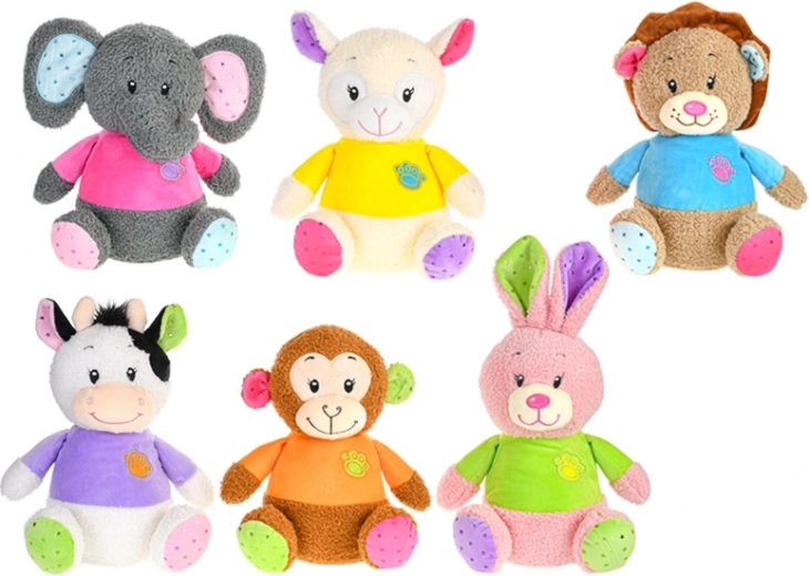 Preslatka plišana životinjica visine 25 cm razveselit će djecu već od rođenja. Na izbor je šest vrsta – slon, ovčica, lav, kravica, majmunčić i zeko. Mekan materijal i prijateljski dizajn jamče sigurno maženje, udobno držanje i sjajan poklon za bebe i veću djecu.