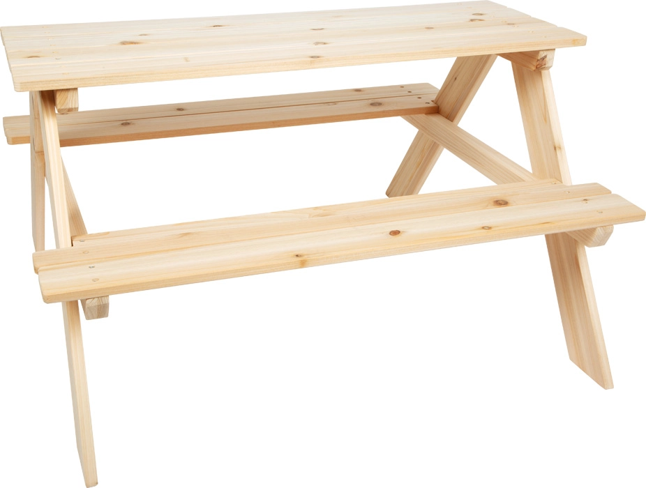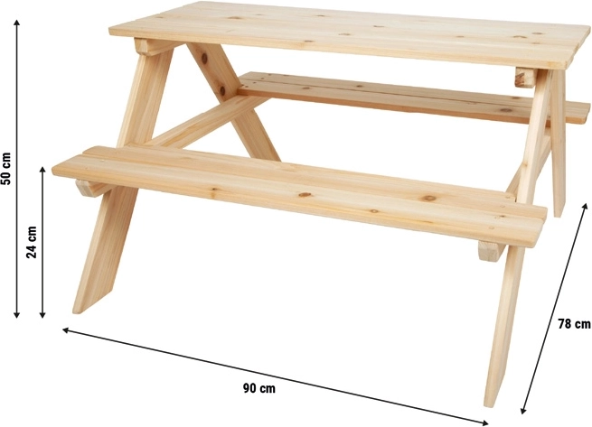 Univerzalan dječji piknik stol od masivnog drva s integriranim klupama nudi stabilnost, sigurnost i prirodan izgled za vanjsku i unutarnju upotrebu. Zahvaljujući robustnoj konstrukciji, zaobljenim rubovima i udobnoj visini sjedišta idealan je za blagovanje, stvaranje i igru. Neobrađeno drvo možete lako površinski obraditi bojama ili uljima prema vlastitom stilu.