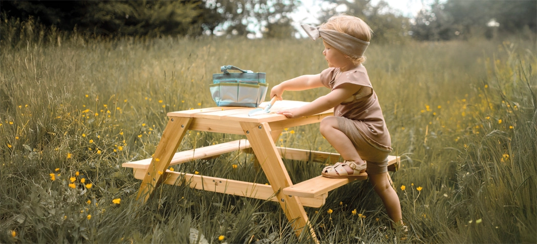 Priuštite djeci vlastito mjesto za igru, kreativnost i prve piknike. Dječji piknik stol small foot od izdržljivog masivnog drva ističe se prirodnim izgledom, čvrstom A-konstrukcijom i integriranim klupama s obje strane. Zaobljeni rubovi i udobna visina sjedenja podupiru sigurno i ergonomsko sjedenje.