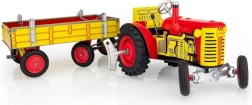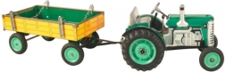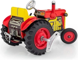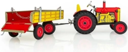Klasična limena igračka za male i velike ljubitelje poljoprivredne tehnike: traktor Zetor s odvojivom prikolicom na pogon oprugom na ključ. Nudi 3 brzine (naprijed, neutral, rikverc), funkcionalno upravljanje volanom i ručnu kočnicu. Precizna češka zanatska izrada, certifikat Sigurna igračka i izdržljiva konstrukcija od tiskanog lima dopunjena plastičnim kotačima.