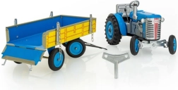 Ovaj limeni traktor Zetor s prikolicom u mjerilu 1:25 donosi autentičan doživljaj vožnje i kolekcionarsku vrijednost. Jedinstveni opružni mehanizam na ključ osigurava gladak pokret, a zahvaljujući mjenjaču s tri brzine djeca uživaju u realističnoj vožnji naprijed i unatrag. Prikolica se lako priključuje ili odvaja, a upravljanje se vrši pravim volanom; tu je i ručna kočnica za sigurno zaustavljanje.