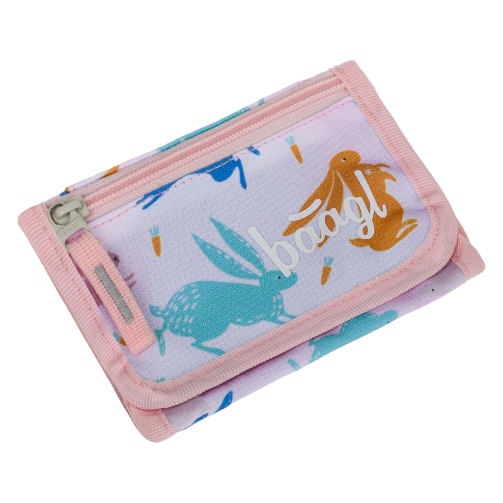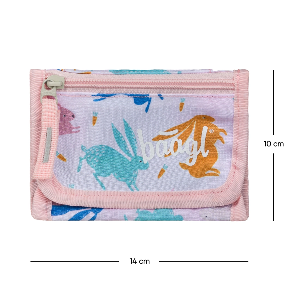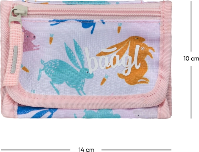 Lagan i praktičan novčanik za vrat marke Baagl s preslatkim motivom Bunny drži sitniš, kartice i ključeve uvijek pri ruci. Ima podesivu vrpcu sa sigurnosnim mehanizmom, poseban džepić za kovanice i sigurno zatvaranje na čičak. Izrađen je od izdržljivog recikliranog materijala za svakodnevnu upotrebu.