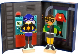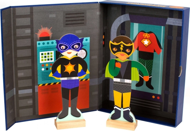 Ovaj pametni magnetski set donosi djeci sate zabave i beskrajne mogućnosti kombiniranja. Od 27 magneta možete stvoriti više od 80 različitih kostima – od hrabrih superjunaka do maštovitih varijacija koje pokreću dječju imaginaciju. Dvije velike figure mogu se postaviti u priložena drvena postolja, pa se s kreacijama može igrati na stolu ili ih izložiti.