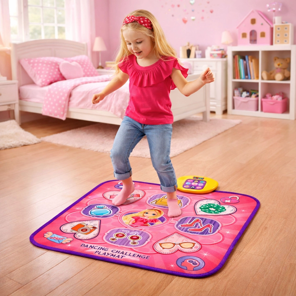 Ova glazbena plesna podloga spaja pokret, ritam i razvoj djece u jednu zaraznu igru. Šareni dizajn s jednorogom i svjetlosni efekti potiču aktivnost te podupiru koordinaciju, reflekse i kondiciju. Zahvaljujući Bluetoothu lako reproducirate glazbu s telefona i prilagodite tempo i stil.