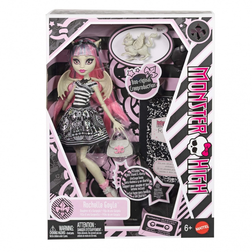Vratite se u svijet Monster High s povratkom kultnog lika Rochelle Goyle. Lutka se ističe crno-bijelim prugastim topom, metalik minicom i ružičastim akcentima koji se slažu s njezinom dugom ružičastom kosom. Detaljan make-up, dodaci i ikonična krila zaokružuju jedinstveni “scaris” stil.