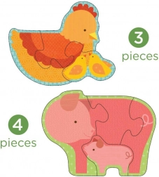 - Set sadrži četiri različite slagalice s brojem dijelova od 3 do 6, što omogućava postepeno povećanje težine.