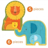 Predstavljamo Petit Collage Prve Puzzle Mladunci Safarija, idealan izbor za male istraživače od 2 godine. Ovaj set sadrži četiri životinje koje će vaše dijete postupno otkrivati kroz lakša i teža slaganja s 3 do 6 dijelova.