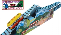 Ova metalna planinska staza na ključ brenda KOVAP donosi čar tradicionalnih mehaničkih modela. Vozilo pokreće opružni mehanizam koji se navija ključem i glatko se kreće po stazi s realističnim ciklusom uspona i spuštanja. Posebna zupčasta letva osigurava precizno kretanje s jedne strane na drugu, dok automatsko isključivanje pogona pri spustu daje modelu autentičnost.