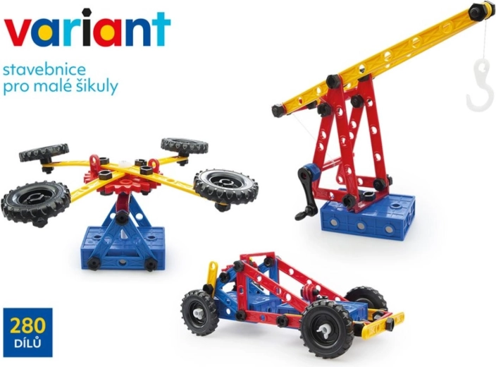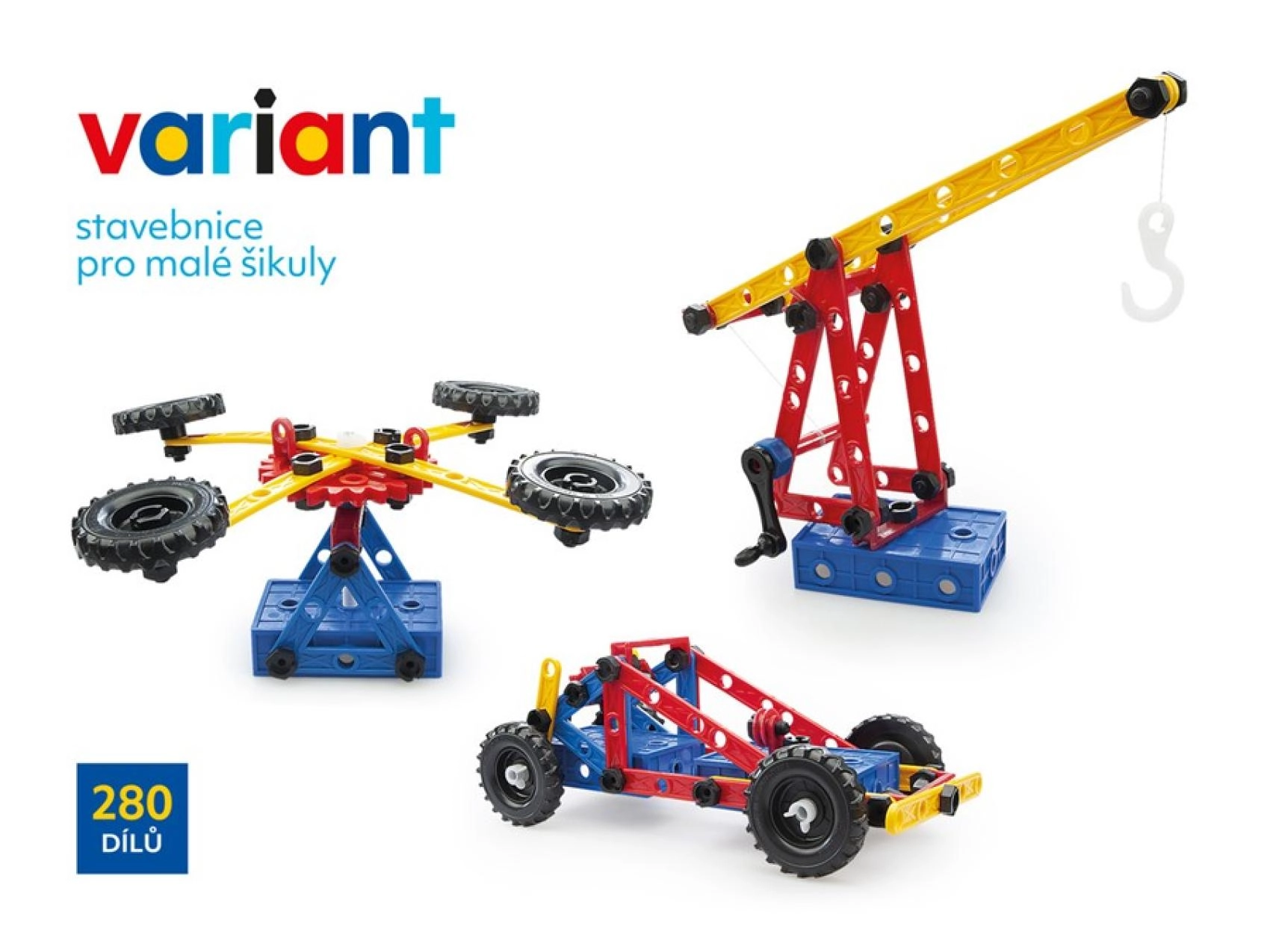 Otkrijte kreativni svijet s plastičnom konstrukcijskom igrom Variant od 280 dijelova, koja razvija finu motoriku, prostornu maštu i logičko razmišljanje. Zahvaljujući čvrstim vijcima i maticama, velikim perforiranim panelima i zupčanicima s lancem, djeca mogu sastaviti automobile, avione i brodove – iznova i iznova.