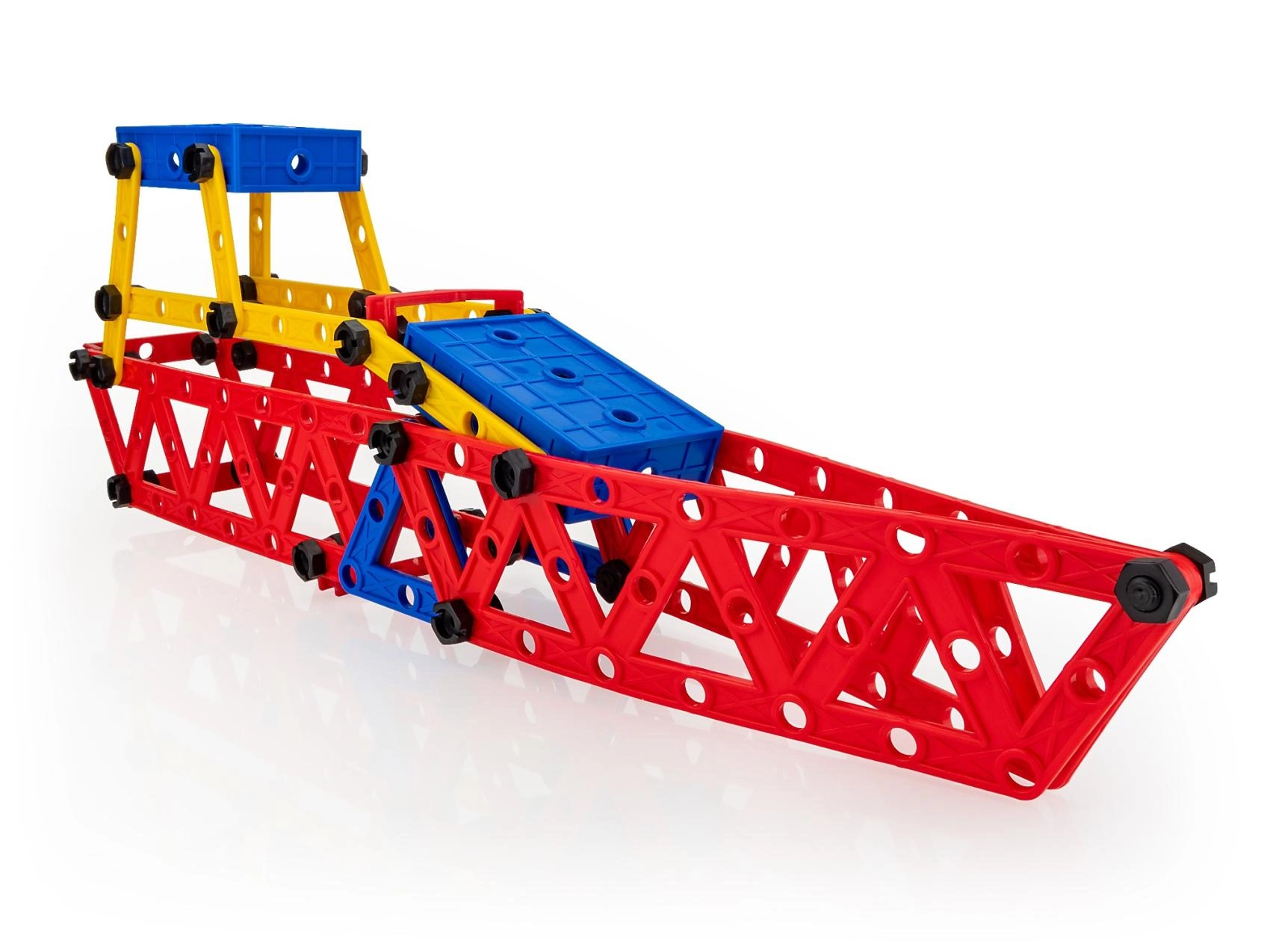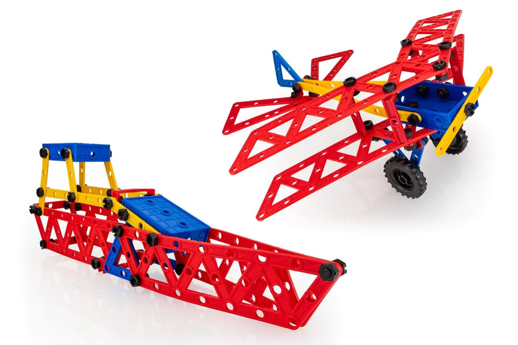Veliki perforirani paneli, nosači i spojnice omogućuju sastavljanje niza modela od aviona do broda – mašti nema granica.