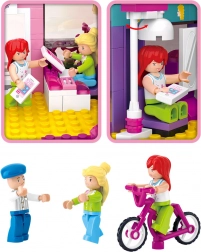 Uključene su tri figurice i ružičasti bicikl za raznoliku igru u gradu. Lako ćete osmisliti prizore od friziranja do brze vožnje do salona.