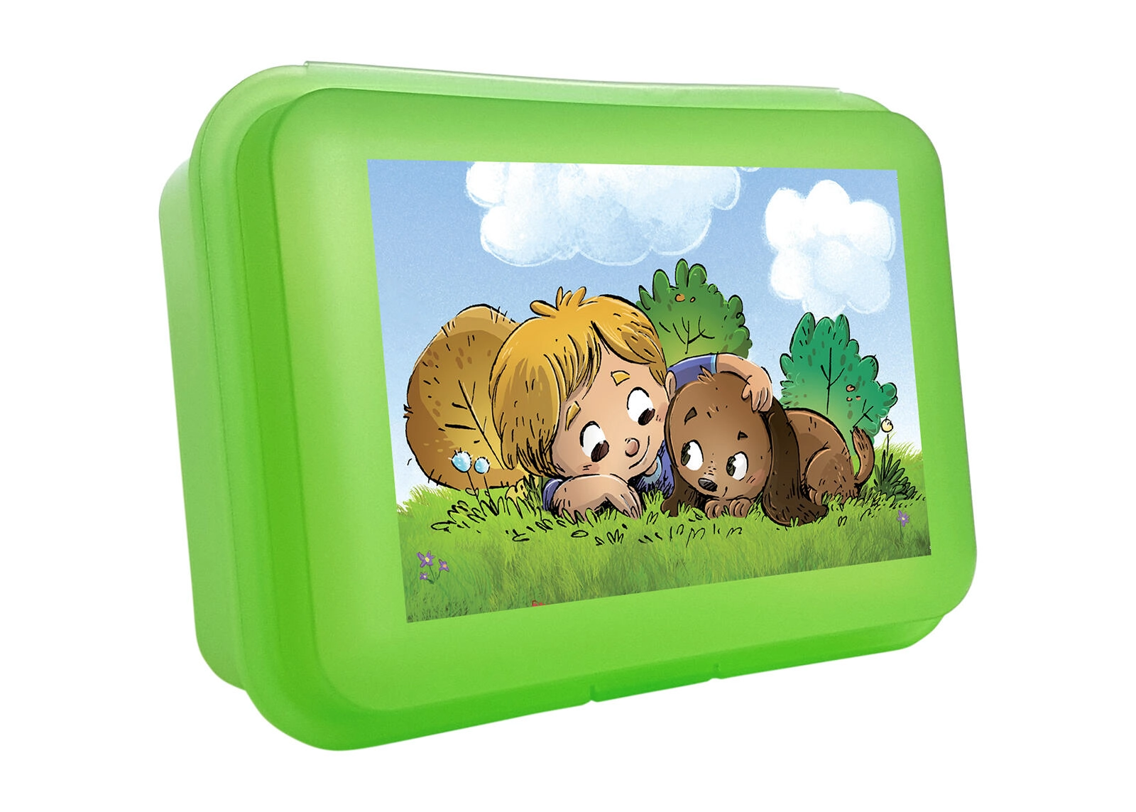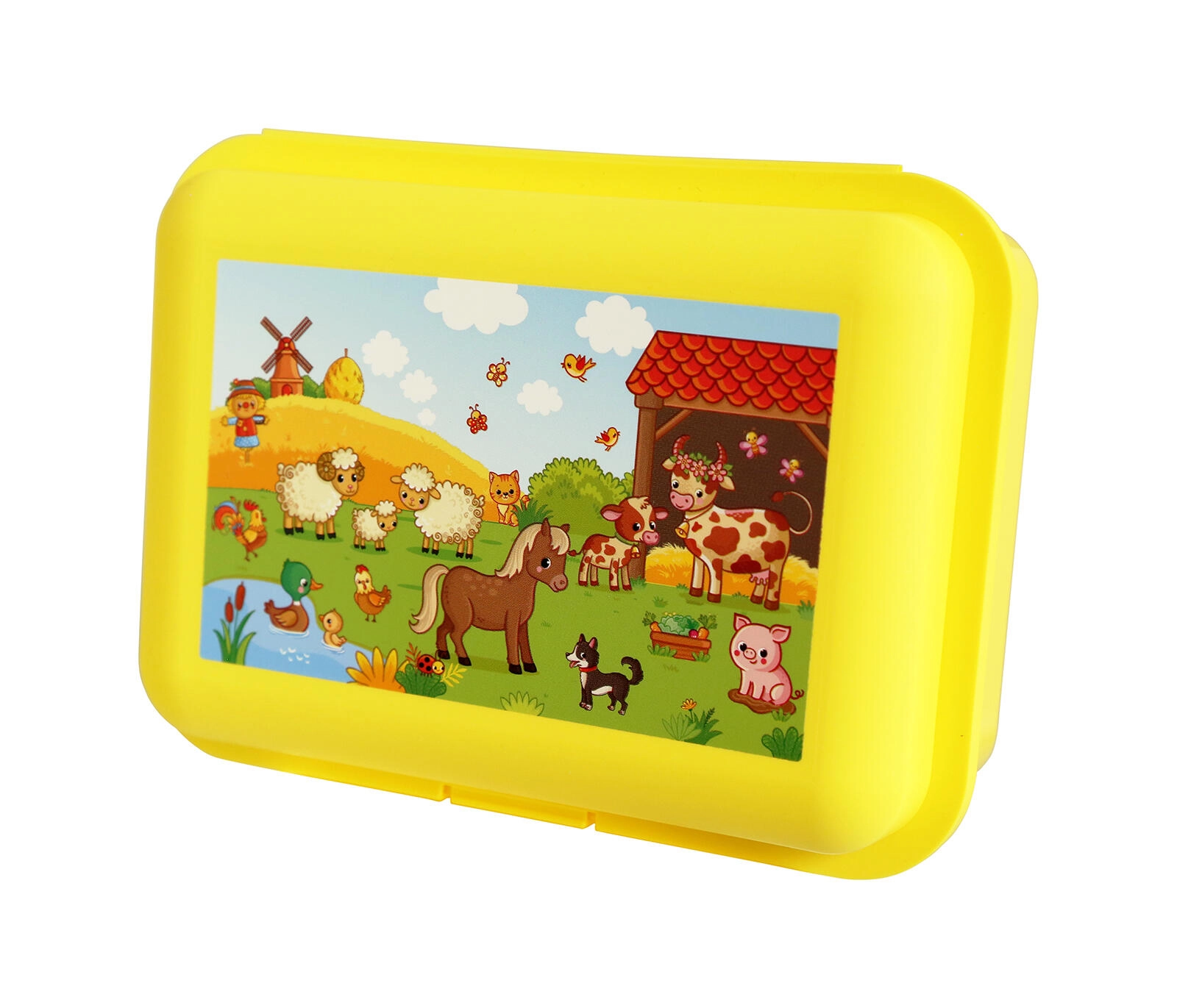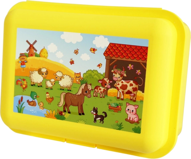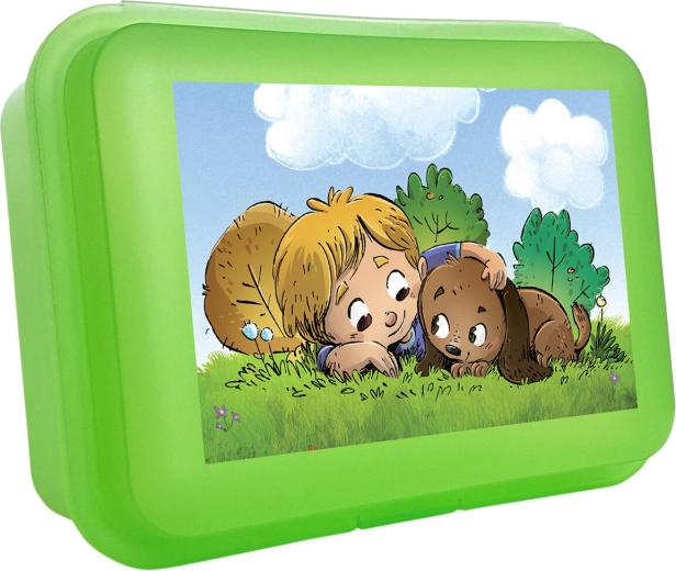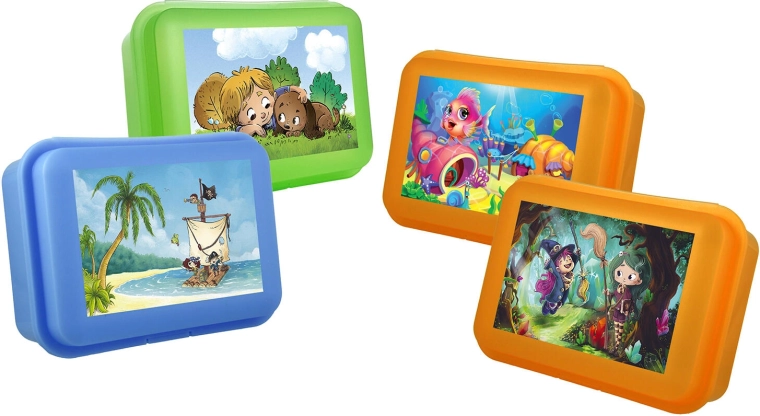 Zahvaljujući kompaktnim dimenzijama 18 × 13 × 7 cm lako stane u školsku torbu ili mali ruksak. Šareni tisak i razigrani motivi – od pirata i ribica do farme ili dječaka sa psom – čine kutiju za užinu omiljenim dječjim dodatkom.
