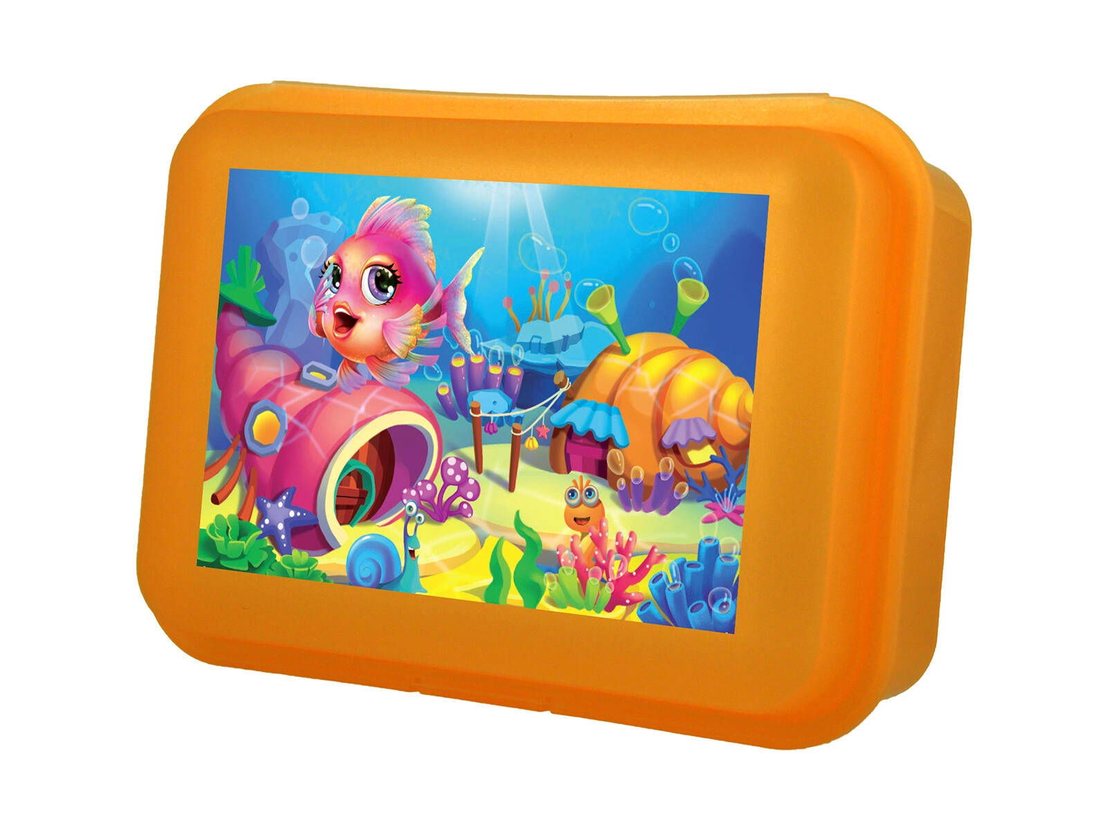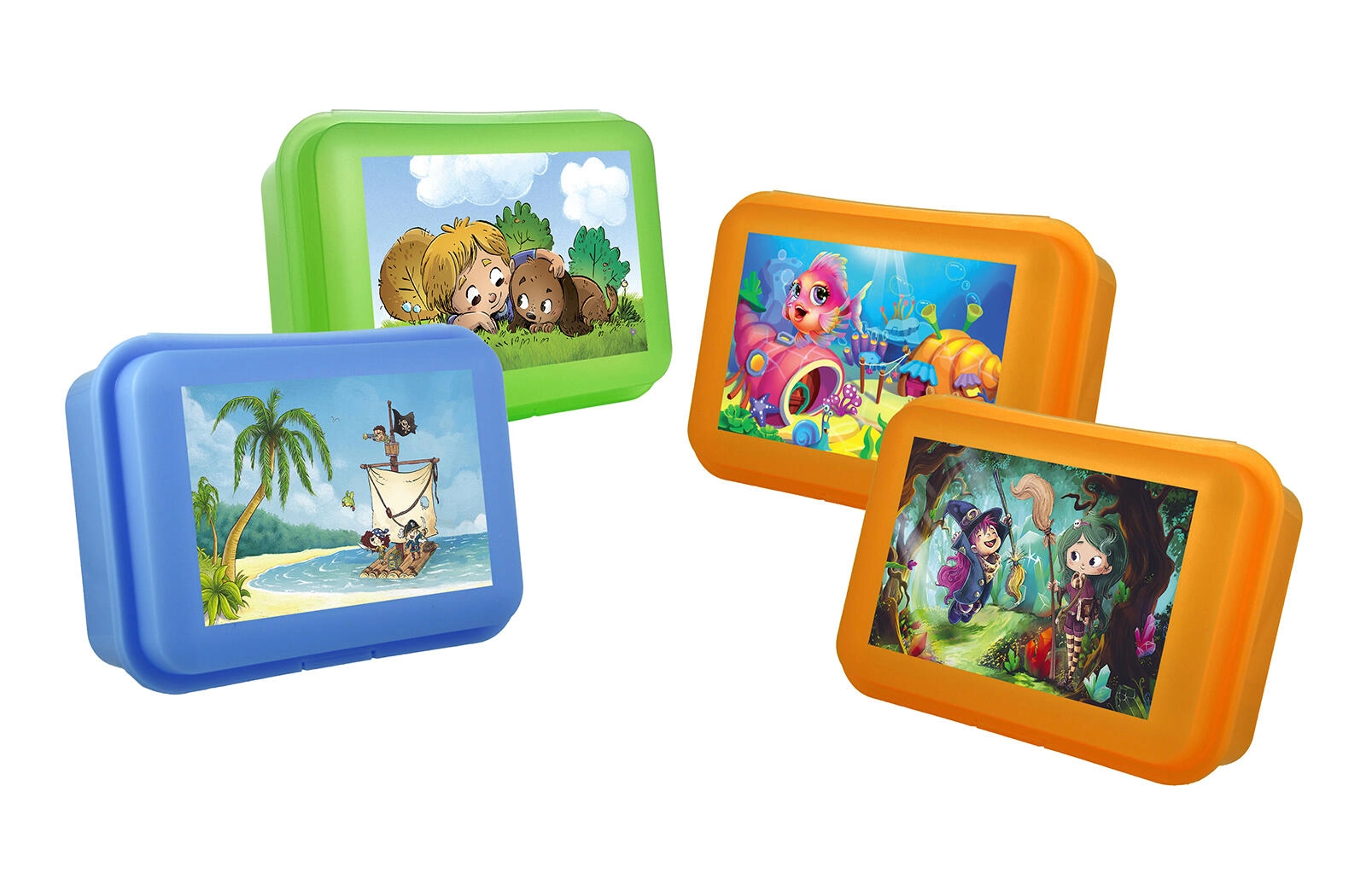 Praktična dječja kutija za užinu od izdržljive plastike za svakodnevnu upotrebu u školi, vrtiću i na izletima. Zahvaljujući sigurnom klik-zatvaraču sadržaj ostaje pouzdano zatvoren. Laka i jednostavna za pranje, kutija nudi kompaktne dimenzije 18 × 13 × 7 cm i atraktivnu mješavinu boja i motiva koji će se svidjeti djeci.