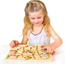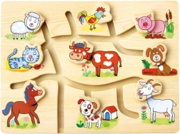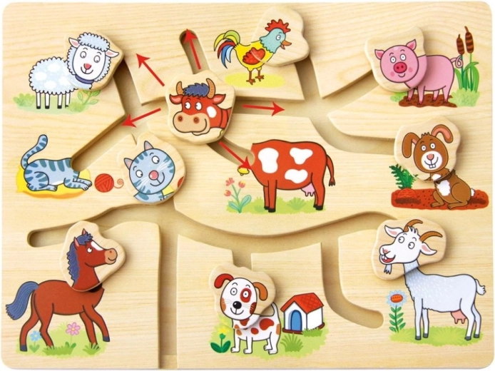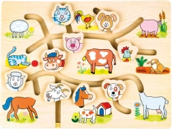Otkrijte čaroliju ove drvene slagalice s motivima domaće farme, koja je dizajnirana za poticanje dječjeg razvoja. Labirint je koncipiran tako da na razigran i interaktivan način pomaže poboljšati finu motoriku i koordinaciju očiju i ruku. Djeca ne samo da uče prepoznati pojedine životinje, nego i vježbaju prostornu orijentaciju i logičko razmišljanje.