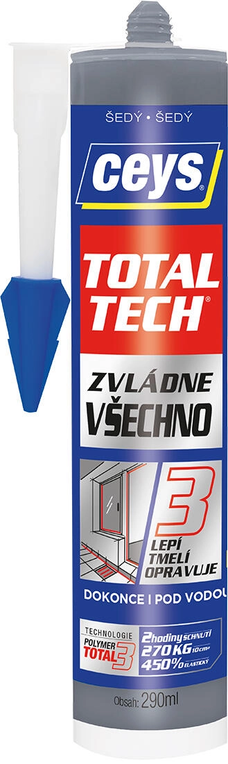 CEYS TOTAL TECH je građevinsko hibridno brtvilo i ljepilo nove generacije koje se nosi s montažom, lijepljenjem i brtvljenjem u najzahtjevnijim uvjetima. Zahvaljujući ultraelastičnom sastavu (do 420 %) odolijeva pucanju, vibracijama i udarcima te ostaje trajno elastično. Stvara vodootporne, čvrste i dugotrajne spojeve otporne na UV zračenje, plijesan i ekstremne temperature.