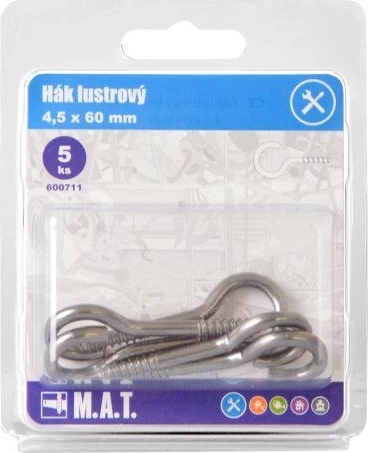 Ovaj set sadrži 5 komada kvalitetnih kukica za lustere duljine 60 mm u elegantnoj sjajnoj obradi. Dizajnirane su za sigurno pričvršćivanje lustera i ostalih visećih rasvjetnih tijela na različite vrste podloga. Zahvaljujući robusnoj konstrukciji i univerzalnom obliku osiguravaju sigurno i stabilno vješanje.