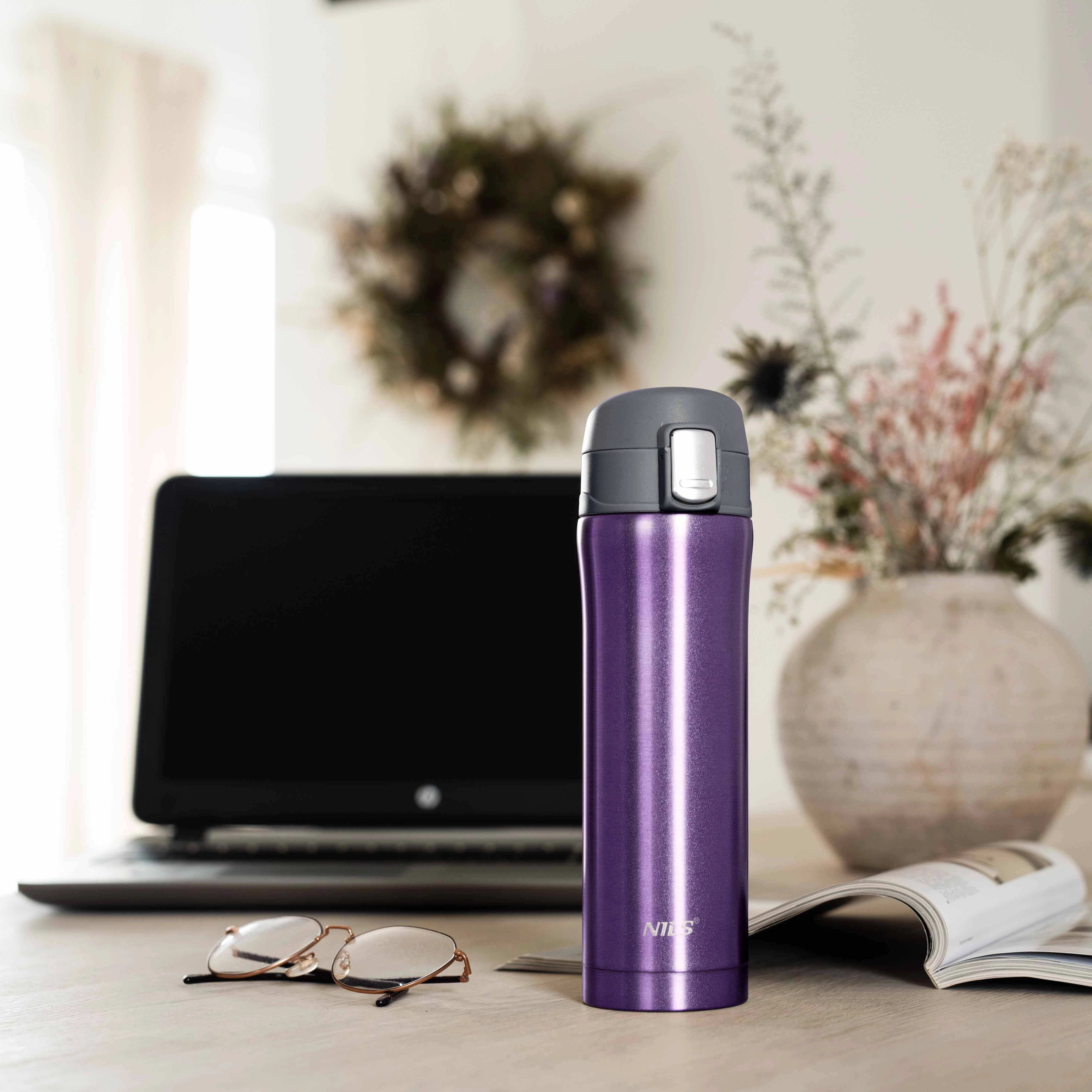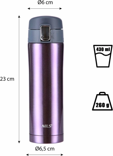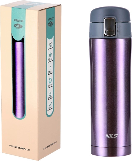 Uživajte u svom omiljenom napitku na idealnoj temperaturi cijeli dan. Termosica NILS Camp u elegantnoj ljubičastoj boji kombinira izdržljiv nehrđajući čelik s vakuumskom izolacijom za maksimalne toplinske performanse i dug vijek trajanja. Zahvaljujući kompaktnim dimenzijama savršeno stane u držač za napitke ili ruksak.