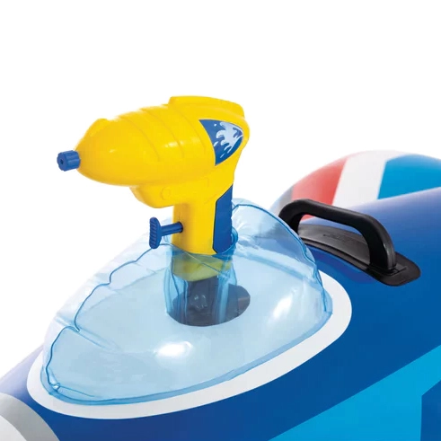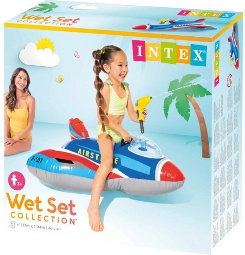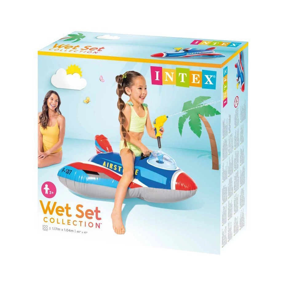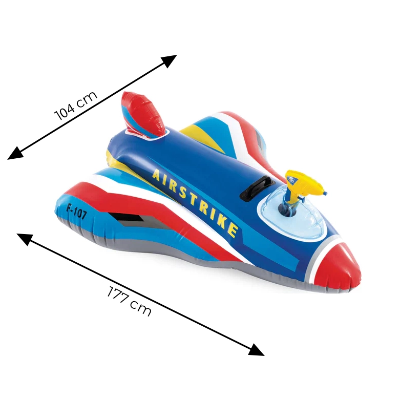 Napuhujući borbeni mlaznjak INTEX pretvara svako kupanje u avanturističku misiju. Djeca sjedaju u „kokpit”, hvataju se za čvrste ručke i s integriranim vodenim topom mogu započeti vodenu bitku. Široka stabilna baza i 2 odvojene zračne komore povećavaju sigurnost i mir tijekom igre.