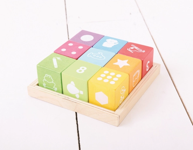 - Praktično pakiranje: 9 kocaka + drveni pladanj za pregledno odlaganje.