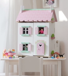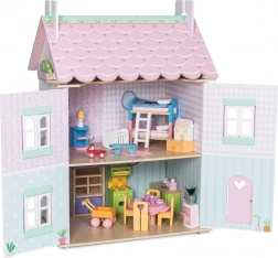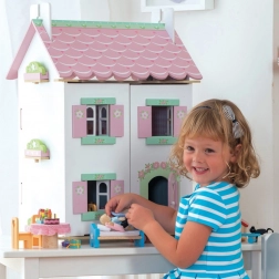 Čarobna drvena kućica za lutke Le Toy Van Sweetheart Cottage donosi djeci beskrajne priče. Ima otvarajuću fasadu i prozore sa žaluzinama, uklonjivi dio krova s potkrovljem i isporučuje se s 37 komada namještaja. Ručno dorađena u nježnim pastelnim bojama, izrađena od održivog drva i lakirana netoksičnim bojama za sigurnu i realističnu igru.