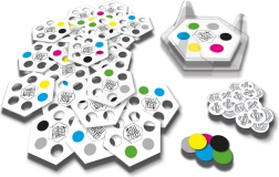 - 46 igraćih karata, 12 šarenih žetona, 60 bodovnih žetona, 1 stalak za karte, 1 pravila