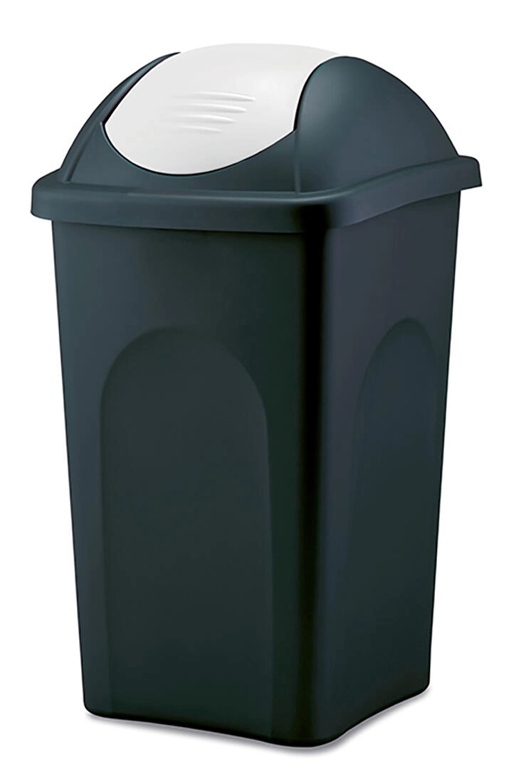 Robusna plastična izrada otporna je na vlagu i lako se čisti, zbog čega je kanta prikladna za kuhinje, urede i zajedničke prostore. Suptilno crno tijelo s bijelim poklopcem djeluje čisto i nenametljivo, a istodobno pomaže održavati higijenu i red.