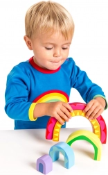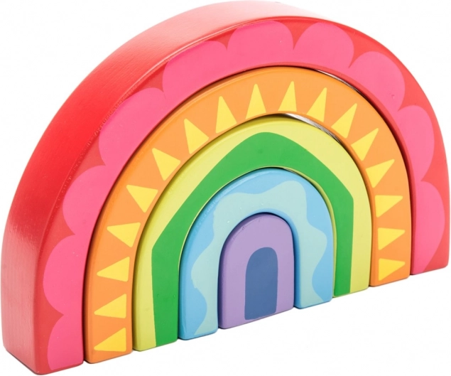 Drvena duga marke Le Toy Van nadahnuta je Montessori principima, nazvana po svojoj šarenoj složivosti. Izrađena od čvrstog, održivo dobivenog drva, pomaže djeci razvijati kreativnost i finu motoriku kroz razigrano slaganje i stvaranje.