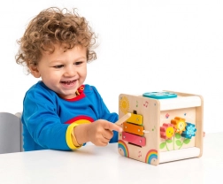 Sretna i edukativna motorna kocka Le Toy Van Petilou od prirodnog drva s raznobojnim elementima potiče maštovitu igru i razvoj kognitivnih vještina kod djece. Izrađena od održivog gumeno drvo i oslikana netoksičnim bojama, osigurava sigurnu i ekološku igračku.