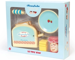 Drveni set Honeybake od LE TOY VAN pretvara dječji kutak u ugodnu kuhinjicu. Djeca će obožavati realistični toster s oprugom iz kojeg nakon pritiska iskaču dvije kriške “tosta”. Maslac sa spojem na čičak uči pravilnom hvatu i radu s nožićem, dok staklenka jagodnog džema i tanjurić upotpunjuju svaku razigranu jutarnju rutinu.