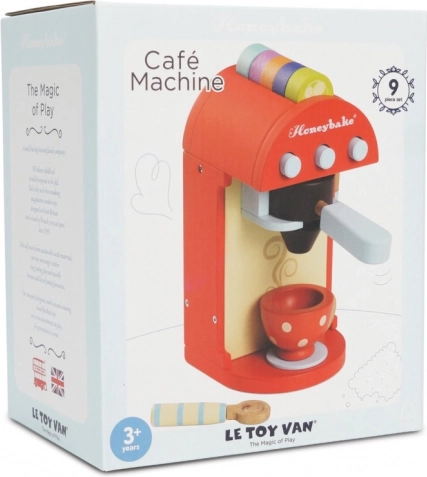 Stilski dječji aparat za kavu iz kolekcije Honeybake brenda LE TOY VAN razveselit će male bariste. Nudi realističnu igru kafića s drvenim kapsulama, ručicom, spenjačem za mlijeko i slatkom šalicom. Izrađen od održivog FSC drva, ručno dorađen netoksičnim bojama na bazi vode za sigurnu i kreativnu zabavu.