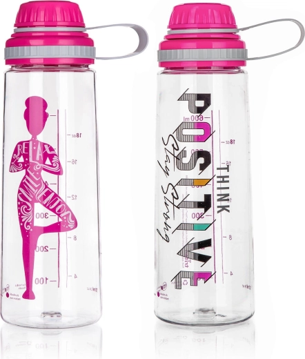 Precizna skala pomaže pratiti dnevni unos tekućine, a ružičasti YOGA print bočici daje svjež izgled i sportski stil.