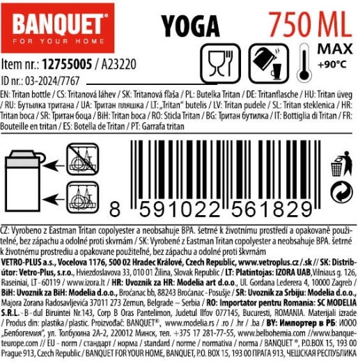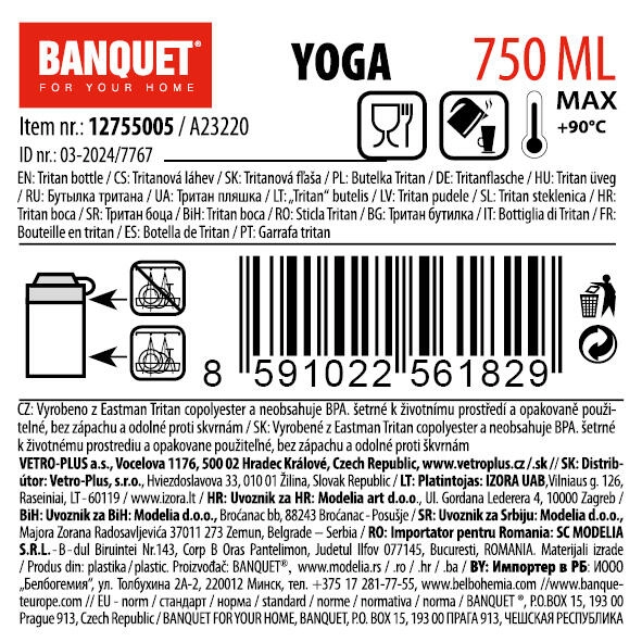 Sportska boca YOGA od visokokvalitetnog tritana kombinira izdržljivost, malu masu i zdravstvenu ispravnost. Zahvaljujući zapremini od 750 ml lako ćete držati hidrataciju pod kontrolom kod kuće, na poslu i na treningu. Širok grlić olakšava dopunjavanje napitka i čišćenje, a vodonepropusni poklopac sprječava prolijevanje u torbi ili ruksaku.