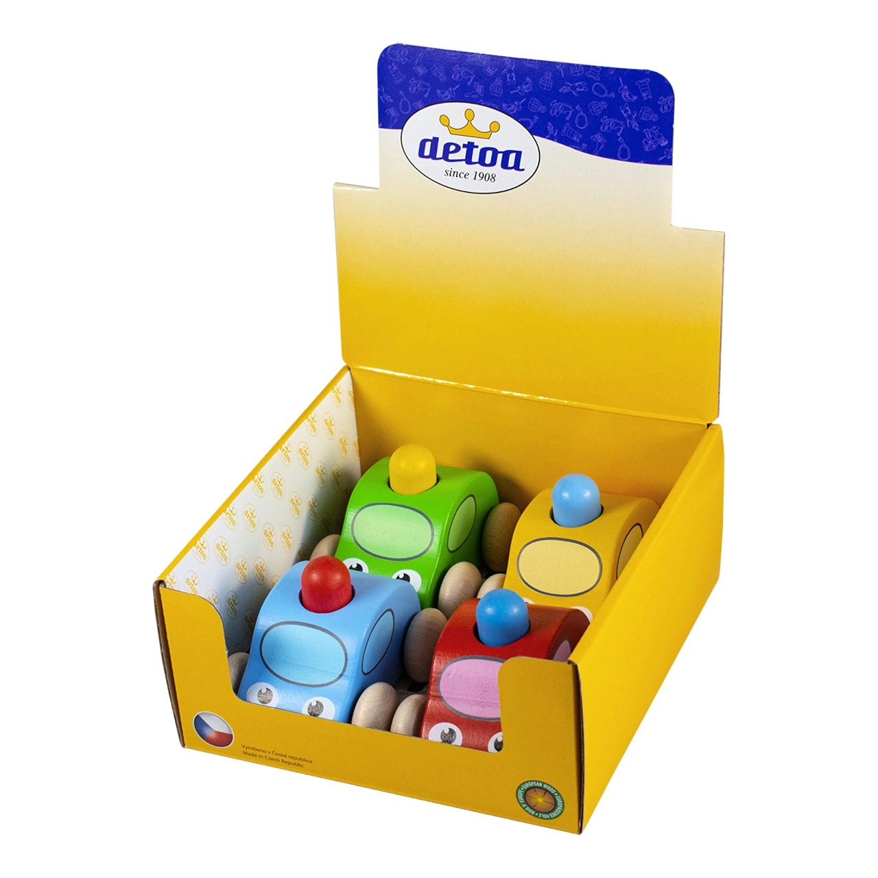 Otkrijte čar tradicionalnih čeških drvenih igračaka. Piskajući auto s rotirkom izrađen je od pomno odabranog drva iz srednje Europe i lakiran certificiranim, ekološkim bojama. Pritiskom na rotirku začuje se zabavno piskanje koje potiče igru i razvija dječju znatiželju.