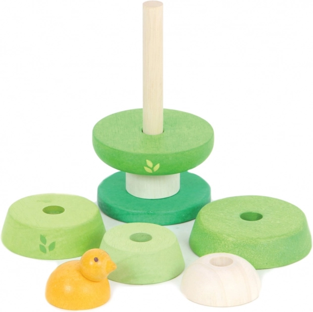 Otkrijte kvalitetnu slagalicu u obliku drvca sa slatkom ptičicom na vrhu. Dijelovi u raznim nijansama zelene potiču djecu na razlikovanje boja i oblika, dok stabilna baza osigurava sigurnu igru. Zahvaljujući elastičnoj šipci, slaganje je udobno i nježno čak i za najmanje ručice.