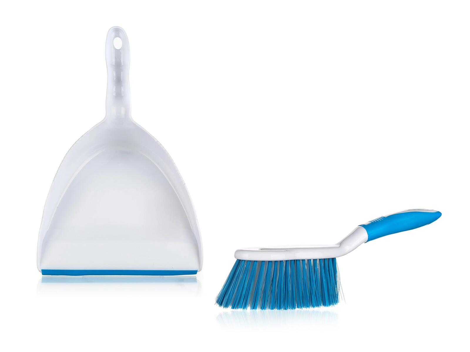 Elegantni plavo-bijeli set EXCLUSIVE spaja funkcionalnost i udobnost. Lopatice s fleksibilnim gumenim rubom precizno prianjaju uz pod i zadržavaju i fini prah, dok metlica s gustim, izdržljivim čekinjama lako pomete mrvice, dlake i prašinu s glatkih površina.