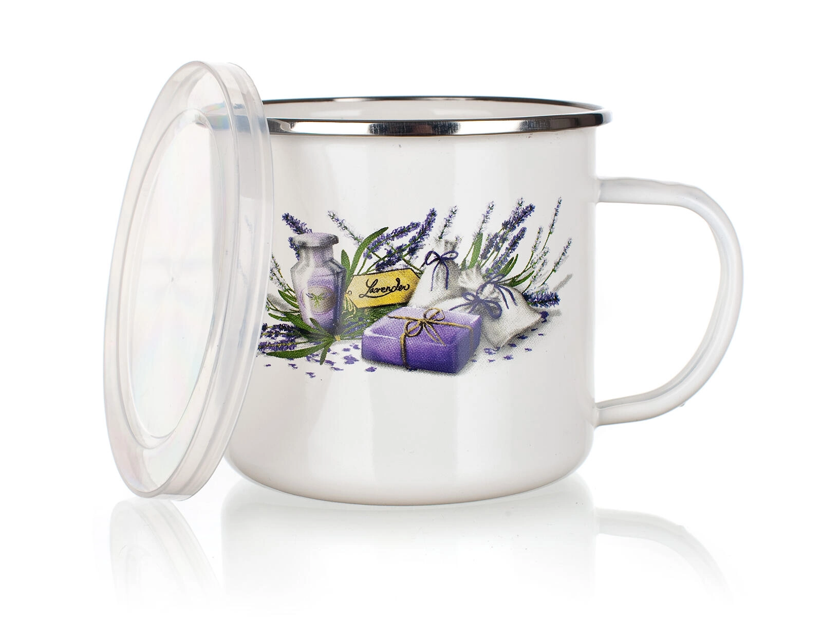 Emajl je poznat po otpornosti na ogrebotine i lakoći održavanja. Šalica je lagana, stabilna i dobro leži u ruci. Poklopac je prikladan i za kratkotrajno pohranjivanje napitaka ili sitnih namirnica kako bi dulje ostali svježi. Stilski otisak Lavender donosi dašak Provanse vašem stolu.