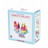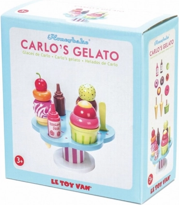 Priredite malim slastičarima autentično iskustvo s veselom garniturom Carlo’s Gelato iz nagrađivane kolekcije Honeybake brenda LE TOY VAN. Djeca mogu kombinirati kuglice, birati između dvaju preljeva i posluživati u kornetu ili čašici. Set je idealan za zajedničku i samostalnu igru te prirodno razvija komunikaciju, kreativnost i koordinaciju oko-ruka.
