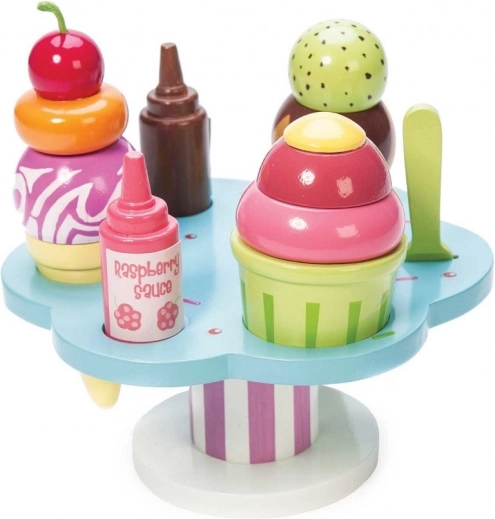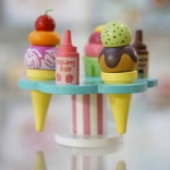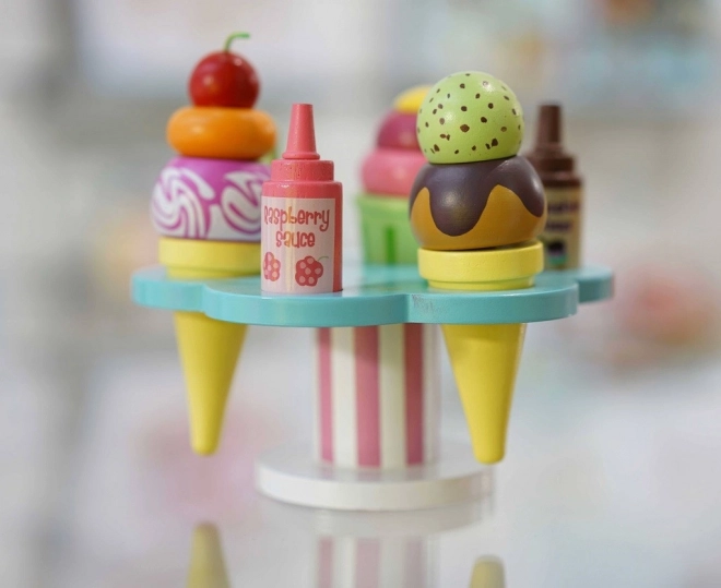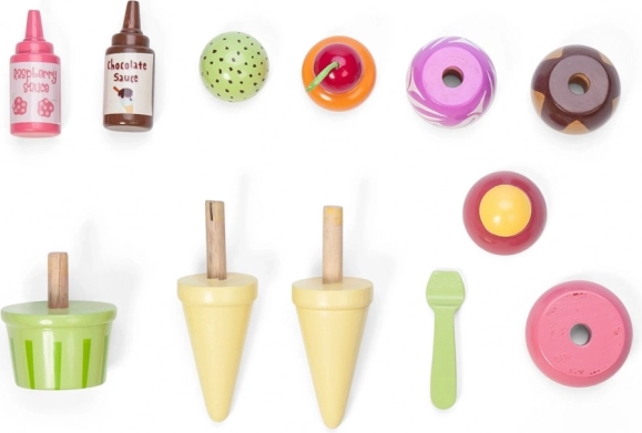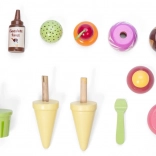 Odvojive kuglice, korneti i čašica potiču na miješanje “okusa” i ukrašavanje malininim ili čokoladnim preljevom. Odlično za igru slastičarnice sa sladoledom.