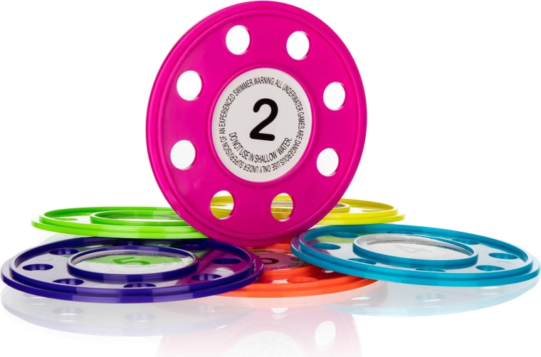 Idealno za kućne bazene, tečajeve plivanja i slobodne aktivnosti. Djeca mogu natjecateljski hvatati diskove s različitih dubina, učiti roniti s glavom pod vodu i napredovati u plivačkim vještinama na prirodan i zabavan način.