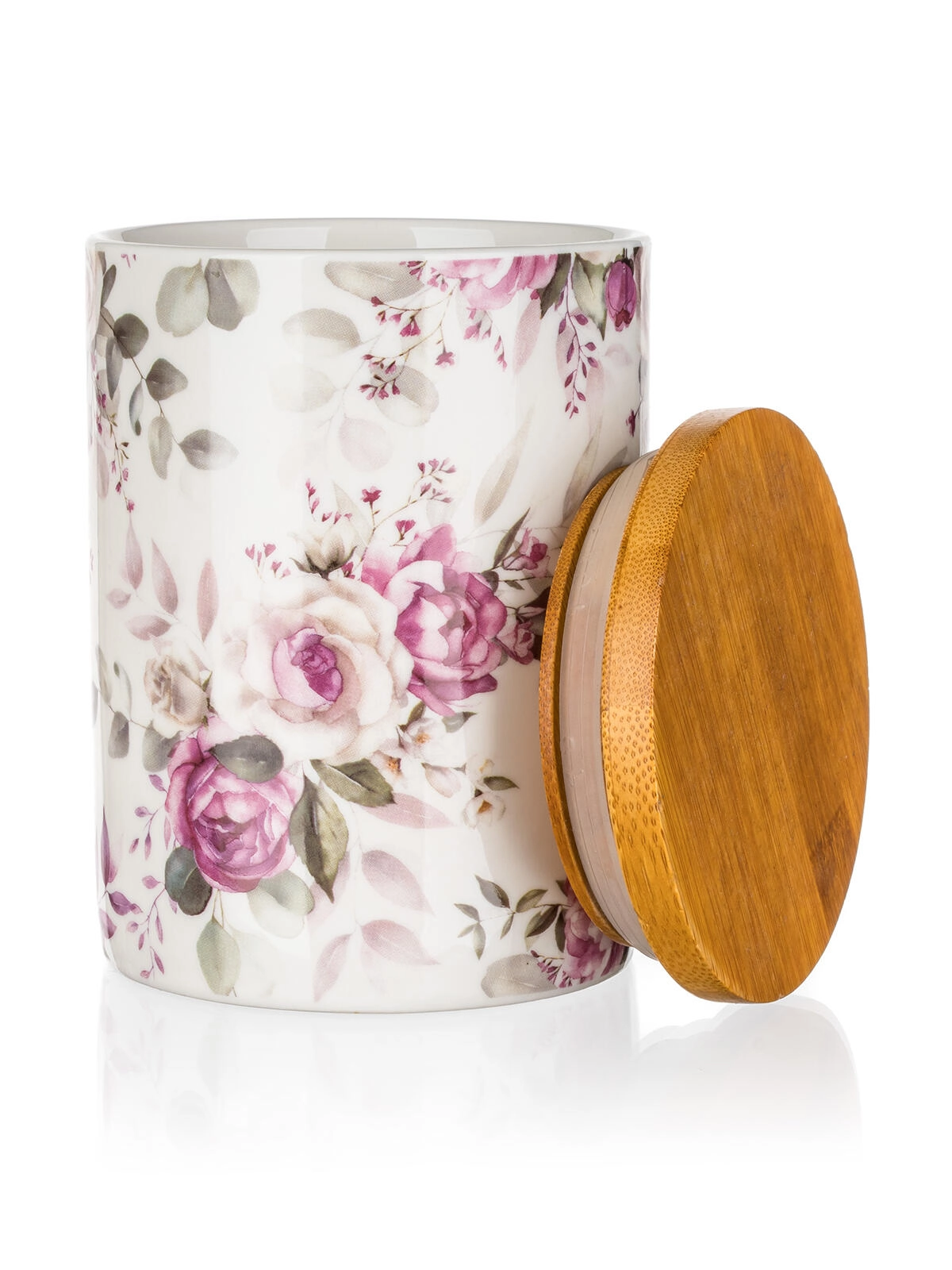 Ova dizajnerska posuda u nježnom floralnom dekoru kolekcije Rose spaja ljepotu keramike i praktičnost bambusnog poklopca sa silikonskim brtvljenjem. Izvrsno služi za svakodnevno skladištenje suhih namirnica te istovremeno krasi policu ili kuhinjski pult.