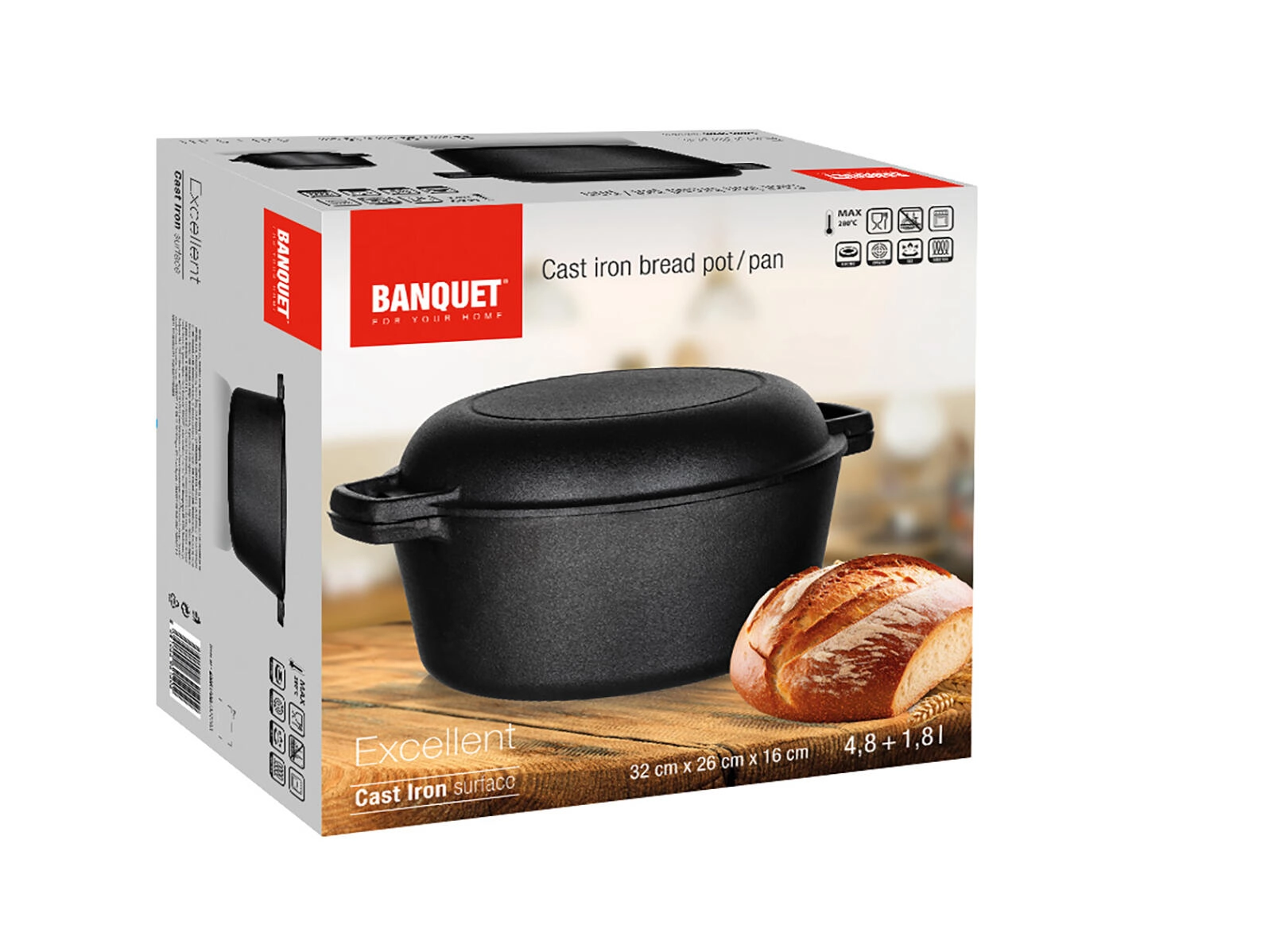 Zahvaljujući čvrstom prianjanju poklopca i debelim stijenkama, ovaj je lonac izvrstan za pečenje kruha s hrskavom koricom, pirjanje mesa, pripremu juha i zapečenih jela. Prije prve uporabe dovoljno je površinu nauljiti i kalcinirati u pećnici, čime dobiva prirodnu neprianjajuću površinu.