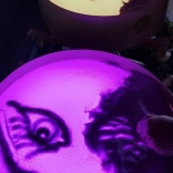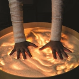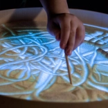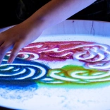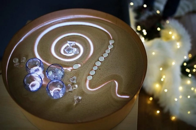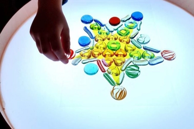 Na ploči se može crtati prstima, kistovima i plastičnim alatima, raditi s pijeskom, kamenčićima i drugim materijalima bez brige o neredu zahvaljujući povišenom rubu. Stol služi i kao svjetlosna scena za malo kazalište, ukrasna rasvjeta dječje sobe ili terapijski alat za razvoj percepcije boja, oblika i uzoraka.