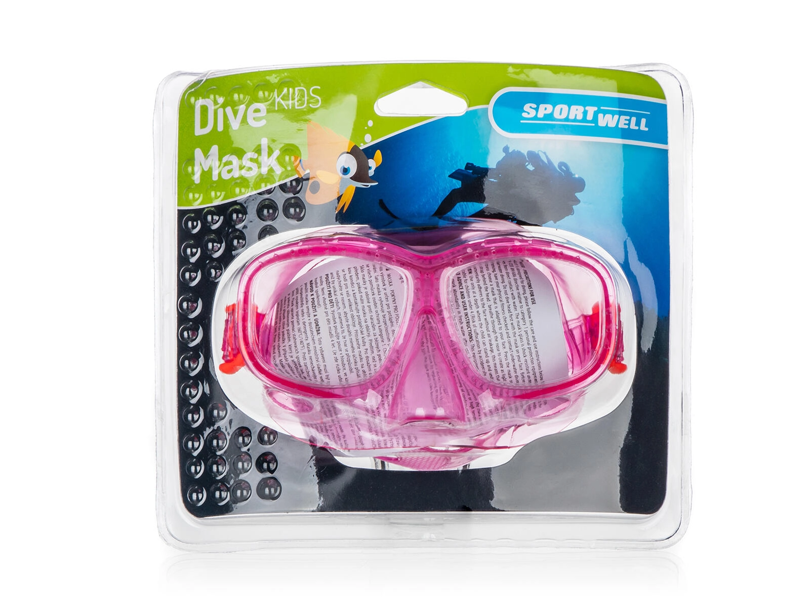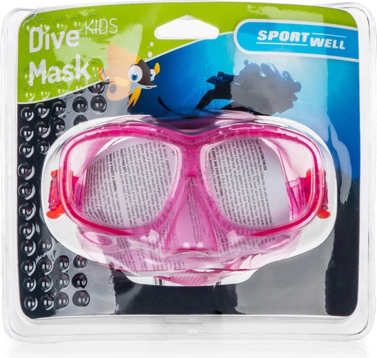 Dječja ronilačka maska SPORTWELL za sigurno i zabavno istraživanje pod vodom. Nudi široko vidno polje zahvaljujući podijeljenim polikarbonatnim lećama, udobno brtvljenje i podesivi remen za sigurno prianjanje. Dostupna u ružičastoj i plavoj boji.