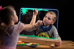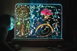 Razsvijetlite dječju maštu. Svjetleća ploča Jonely s izdržljivom površinom od kaljenog stakla omogućuje slikanje vodenim bojama, prstima i perivim flomasterima. Površina se lako čisti, a zahvaljujući mogućnosti obostranog crtanja zabavu mogu istovremeno dijeliti i braća i sestre. Integrirane LED diode u donjem okviru lijepo osvjetljavaju svaki potez i pretvaraju crteže u sjajna djela.