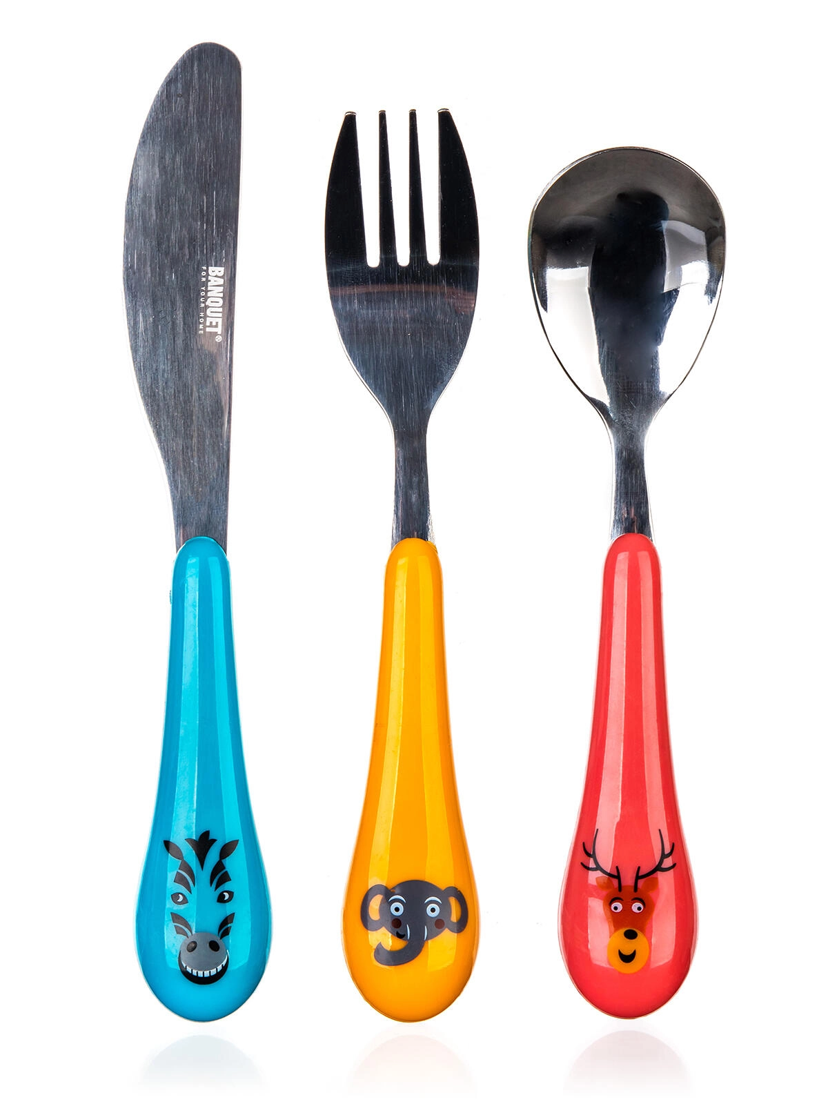 Ovaj set od 3 dijela sadrži sve što je djeci potrebno za ugodno objedovanje: žlicu, vilicu i nož. Zahvaljujući razigranim motivima iz ZOO-a svaki će obrok postati zabava, a djeca će brže usvojiti pravilne navike.