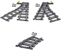 Set LEGO City skretnice pametno je proširenje svake kolekcije željezničkih tračnica. Zahvaljujući kombinaciji ravnih i zakrivljenih dijelova te funkcionalne poluge za prebacivanje skretnica lako ćete osmisliti razrađeno kolosiječno postrojenje točno po svojim željama. Odvojci, obilazne rute i nove postaje – sve ćete savladati u trenu.