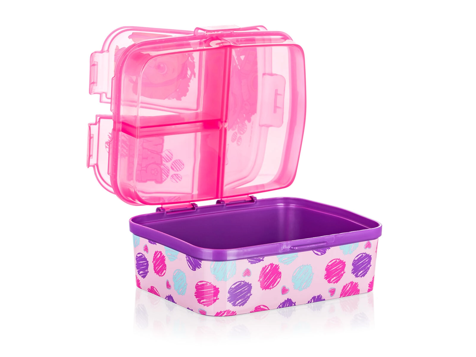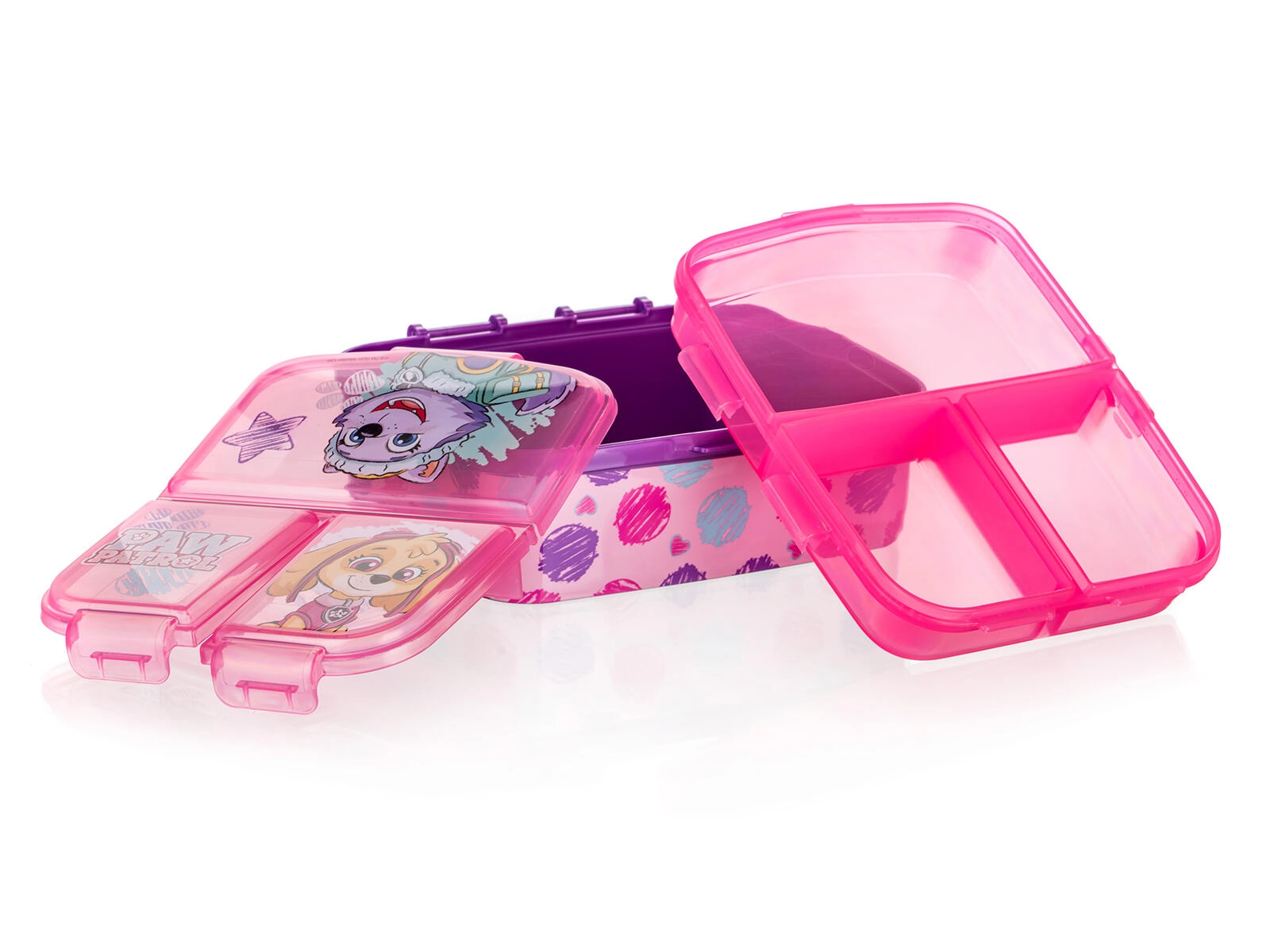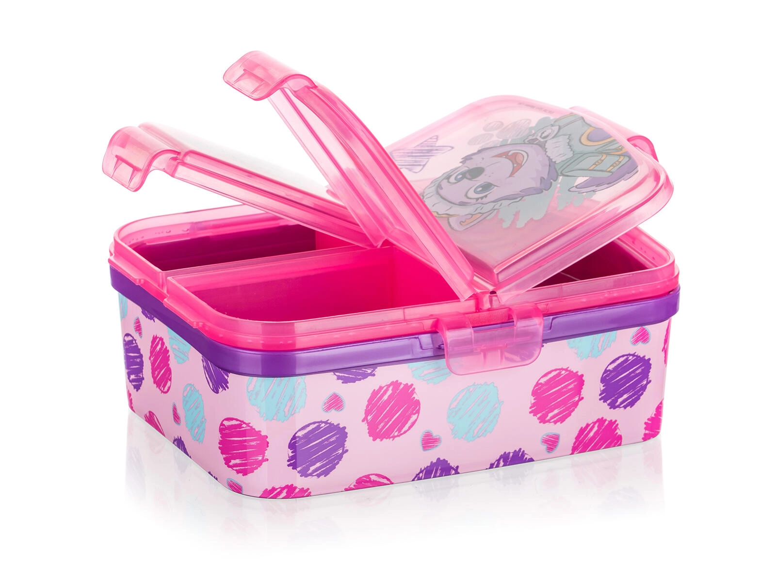 Praktična i simpatična dječja kutija za užinu s motivom PATROLA GIRL održava užinu svježom i sigurno zatvorenom. Zahvaljujući čvrstoj kopči ništa se ne prosipa, a podijeljeni pretinci pomažu odvojiti različite vrste namirnica. Idealno za školu, izlete i aktivnosti.