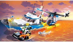 Ovaj set sadrži brod, helikopter i dodatne elemente za spasilačke i policijske akcije, što nudi beskrajne mogućnosti u igri.