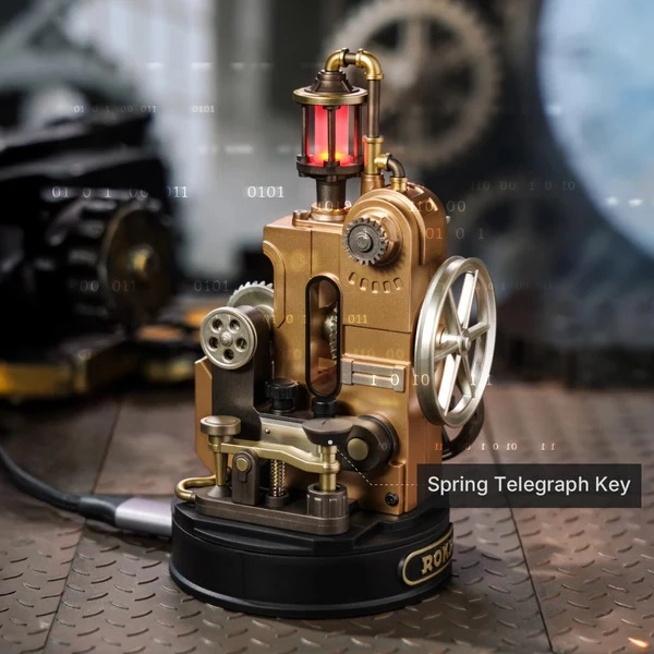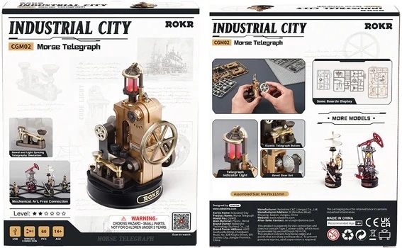 Ovaj detaljno izrađen model Morseovog telegrafa iz serije Industrial City donosi u vaš dom djelić tehničke povijesti. Višestupanjski prijenosi prenose energiju u mehanizam telegrafa, dok opružna tipka stvara karakterističan klik, svjetlosni i zvučni signal – upravo onako kako je funkcionirala analogna komunikacija prošlosti.