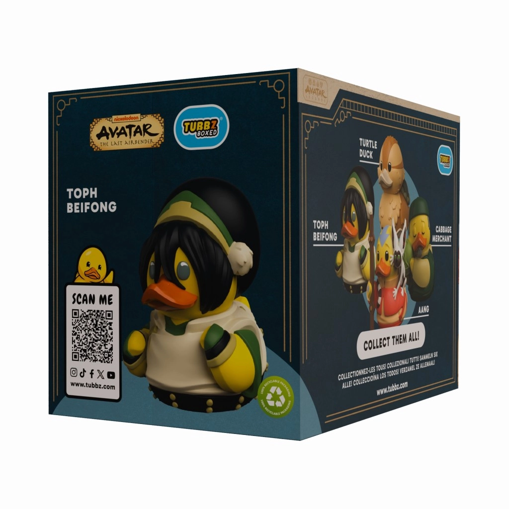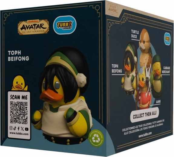 Kolekcionarska patkica TUBBZ inspirirana likom Toph Beifong iz svijeta AVATAR: THE LAST AIRBENDER oduševit će svakog fana i kolekcionara. Nudi precizne detalje, službenu licencu i kompaktne dimenzije oko 9 cm. Isporučuje se u stiliziranoj kutiji s prozorčićem, idealnoj za izlaganje.